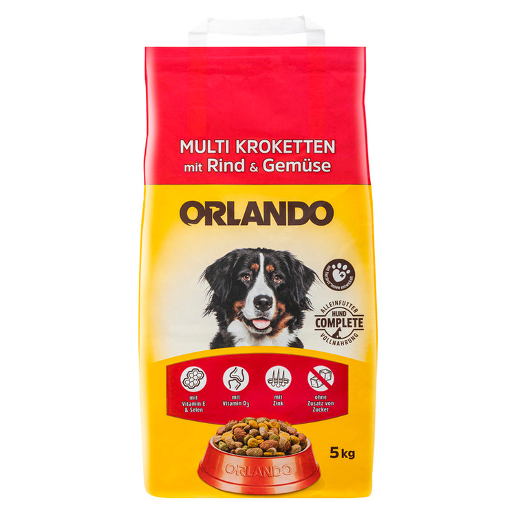 سگ ها همه چیزخوار هستند، به این معنی که می توانند گوشت و گیاه بخورند. بسیاری از غذاهای تجاری سگ با سبزیجات و میوه ها همراه با گوشت و غلات تهیه می شوند. این محصولات همچنین به گونه ای ساخته شده اند که شامل تمام مواد مغذی مورد نیاز سگ برای سالم بودن باشد. در فرمولاسیون غذای خشک سگ اورلاندو با طعم گوشت و سبزیجات Orlando meat & vegetable، گوشت و سبزیجات سالم و ارگانیک به کار رفته است.